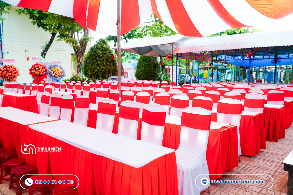 - Nhà bạt và bàn ghế tại sự kiện, cùng nhiều trang thiết bị khác,…