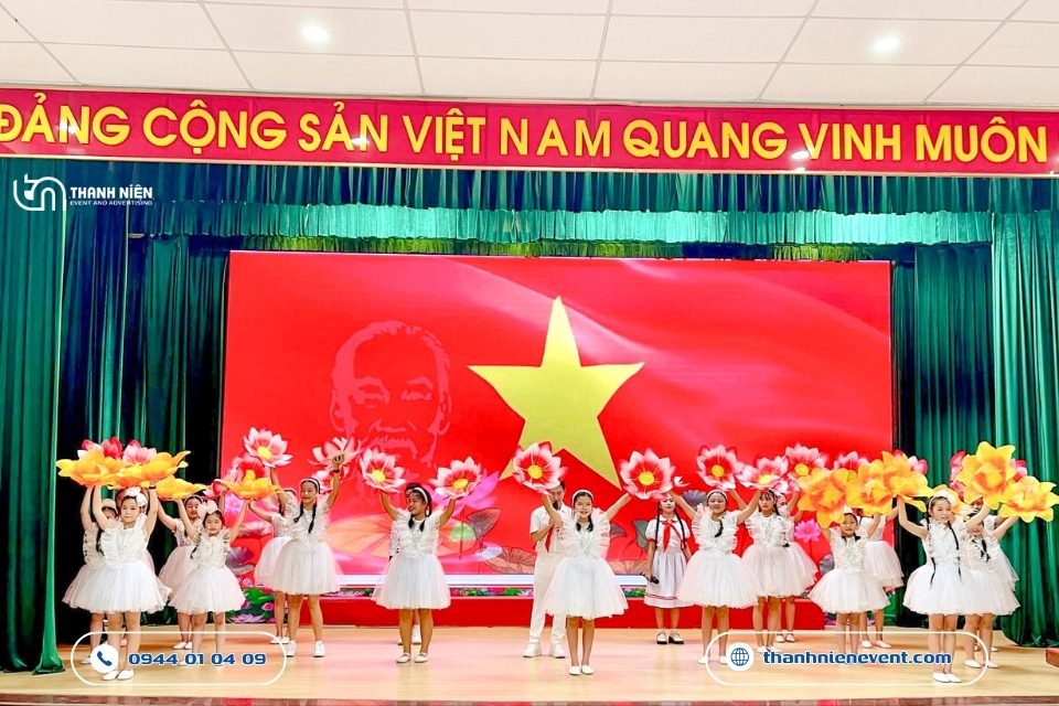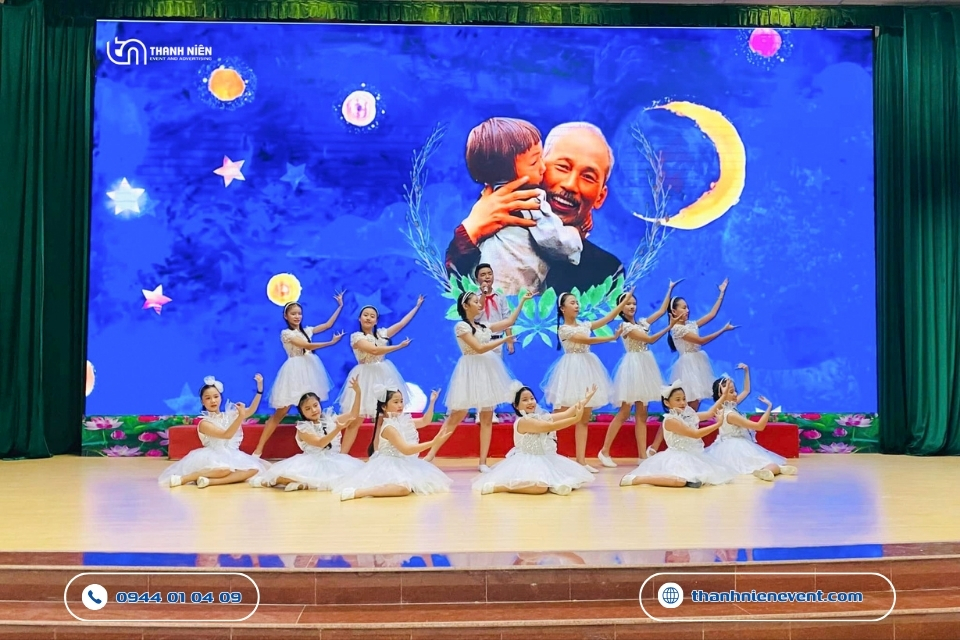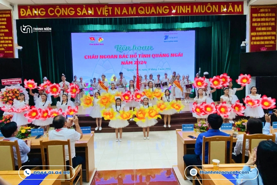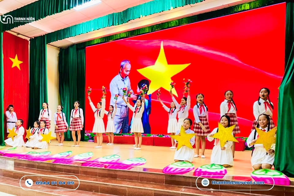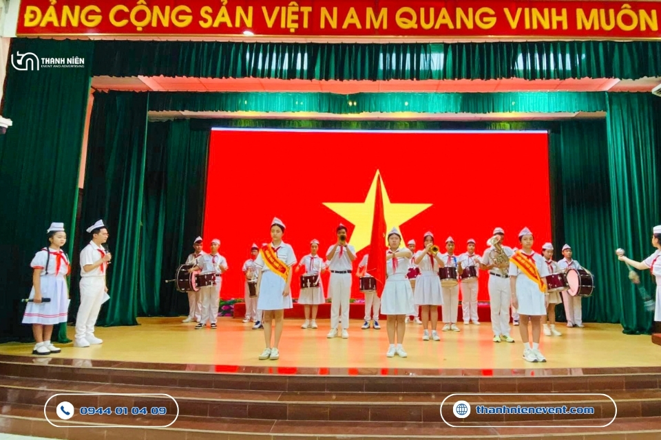 - Kịch bản sinh động, hấp dẫn: Thanh Niên Event đã phối hợp cùng ban tổ chức để xây dựng kịch bản chương trình nhịp nhàng. Mở đầu buổi lễ liên hoan là các tiết mục văn nghệ đặc sắc đến từ đội văn nghệ thiếu nhi, tiếp nối là nghi thức dâng hoa lên Bác đầy trang nghiêm. Điểm nhấn của buổi lễ chính là khoảnh khắc các em học sinh xuất sắc bước lên sân khấu nhận khen thưởng, những nụ cười rạng rỡ và niềm tự hào hiện rõ trên gương mặt các em chính là thành công lớn nhất của đơn vị tổ chức.