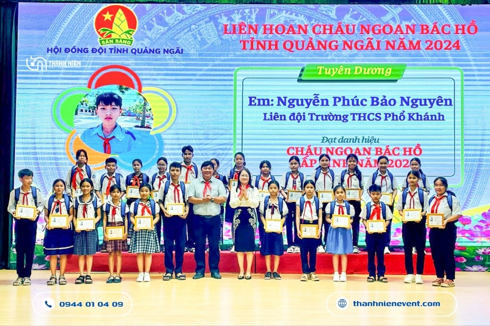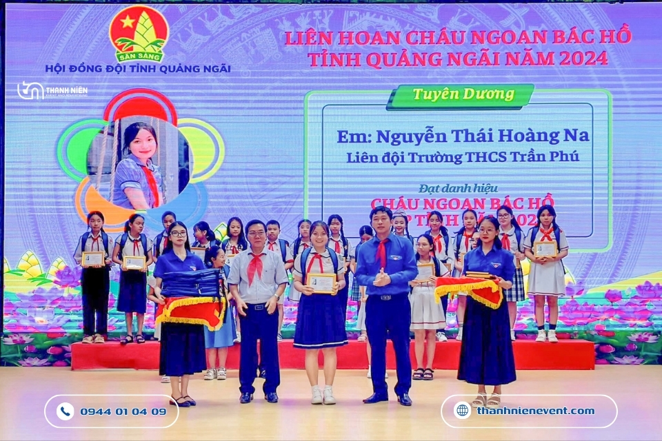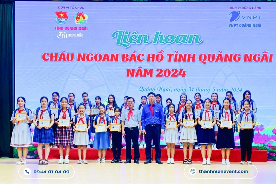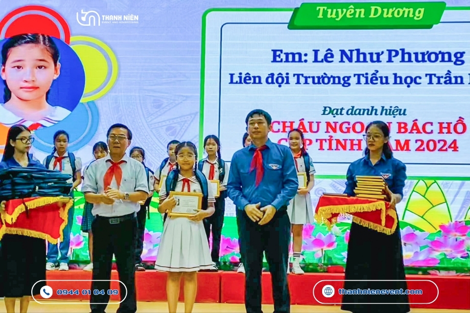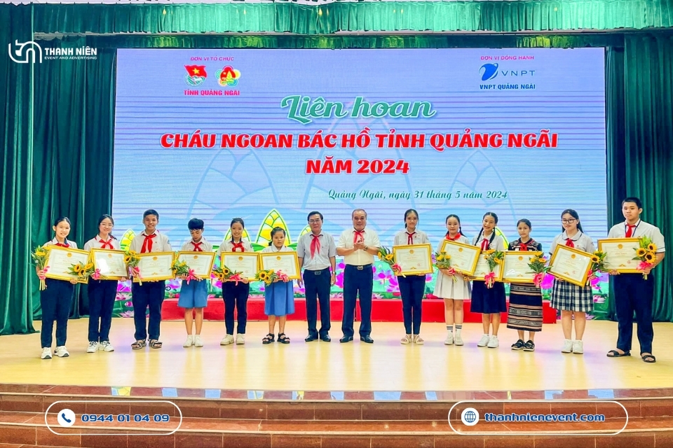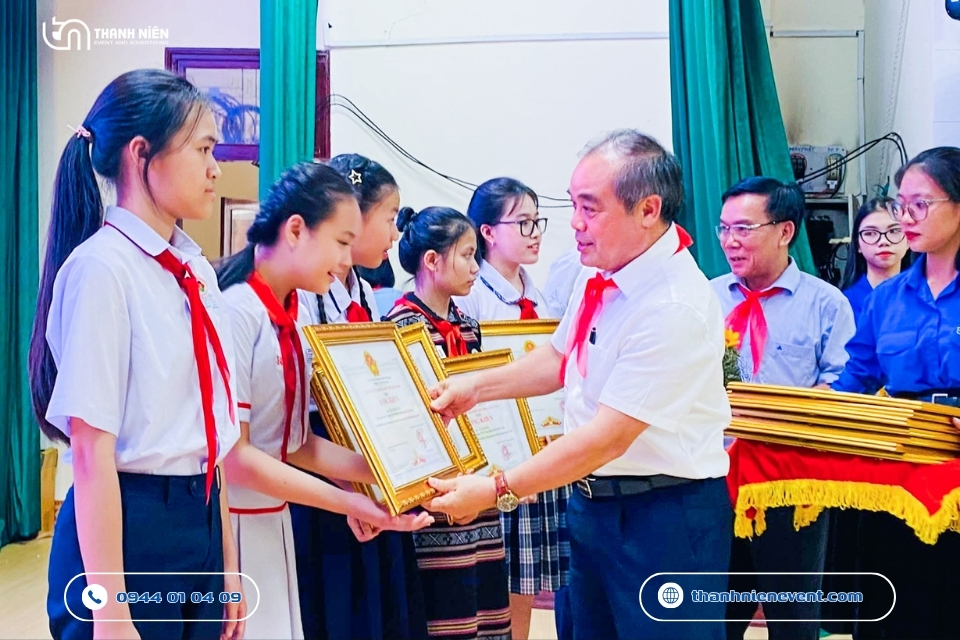 - Kịch bản sinh động, hấp dẫn: Thanh Niên Event đã phối hợp cùng ban tổ chức để xây dựng kịch bản chương trình nhịp nhàng. Mở đầu buổi lễ liên hoan là các tiết mục văn nghệ đặc sắc đến từ đội văn nghệ thiếu nhi, tiếp nối là nghi thức dâng hoa lên Bác đầy trang nghiêm. Điểm nhấn của buổi lễ chính là khoảnh khắc các em học sinh xuất sắc bước lên sân khấu nhận khen thưởng, những nụ cười rạng rỡ và niềm tự hào hiện rõ trên gương mặt các em chính là thành công lớn nhất của đơn vị tổ chức.