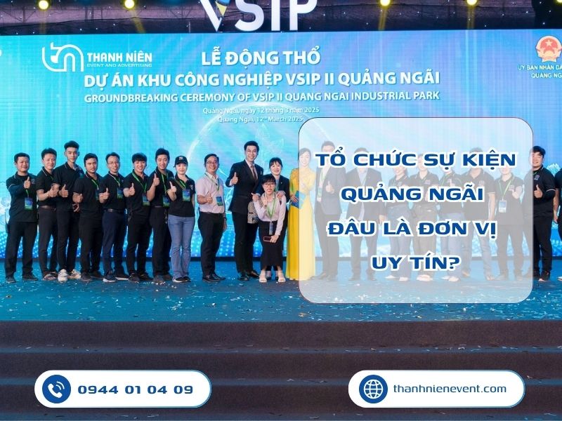 Công ty Tổ chức sự kiện Thanh niên là đơn vị chuyên tổ chức sự kiện lớn nhất tại Quảng Ngãi. Với kinh nghiệm dày dặn trong lĩnh vực tổ chức sự kiện. Đội ngũ nhân viên lành nghề, giàu nhiệt huyết. Trang thiết bị đa dạng, hiện đại.