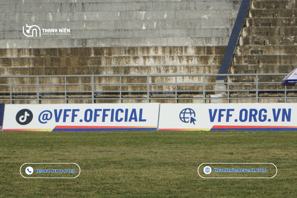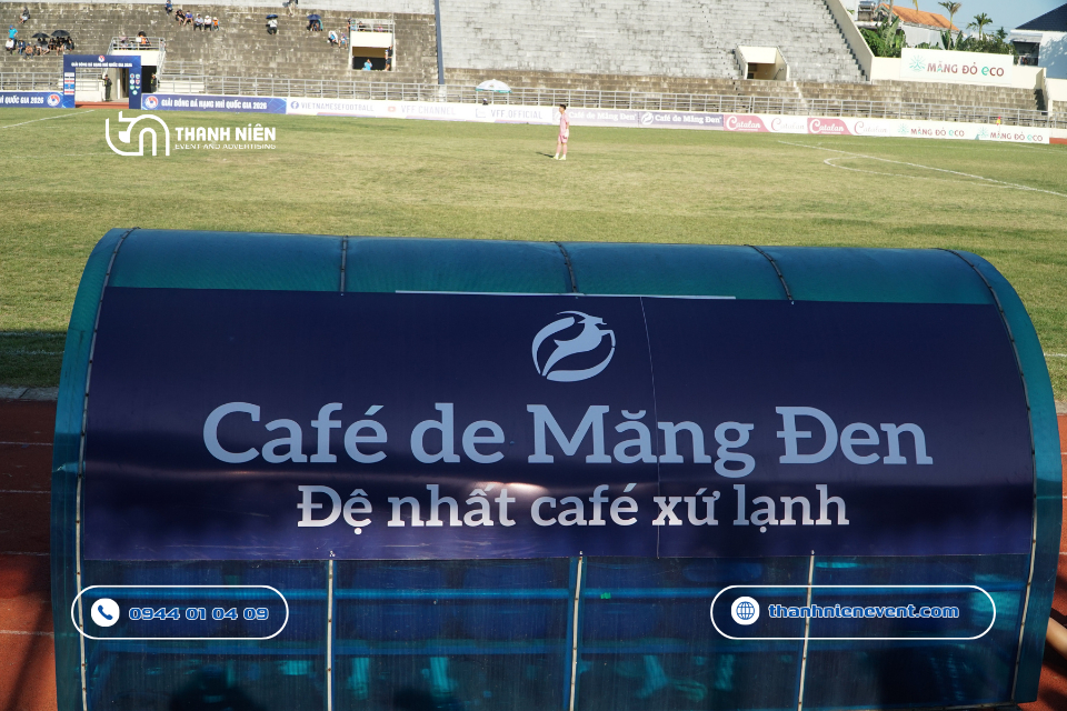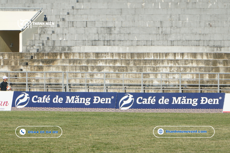 - Tính đồng bộ thương hiệu: Việc thi công quảng cáo sự kiện tại Quảng Ngãi cho một giải đấu quốc gia đòi hỏi sự chính xác tuyệt đối về màu sắc và logo của VFF cũng như các nhà tài trợ lớn như Café de Măng Đen.