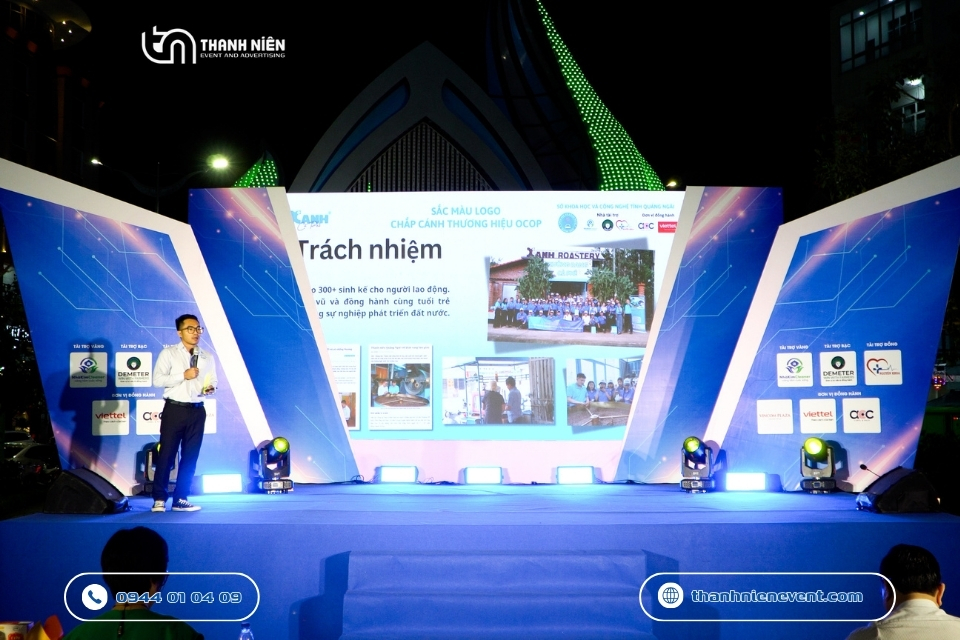 - Âm thanh, ánh sáng và kỹ thuật trình chiếu: Trong một cuộc thi khoa học, phần thuyết trình và demo dự án là quan trọng nhất. Thanh Niên Event đã trang bị hệ thống màn hình LED độ nét cao cùng âm thanh, ánh sáng tiêu chuẩn. Sự phối hợp nhịp nhàng giữa kỹ thuật viên và thí sinh giúp các bài thuyết trình trở nên sinh động, thuyết phục hơn, đảm bảo truyền tải trọn vẹn ý tưởng đến hội đồng giám khảo.