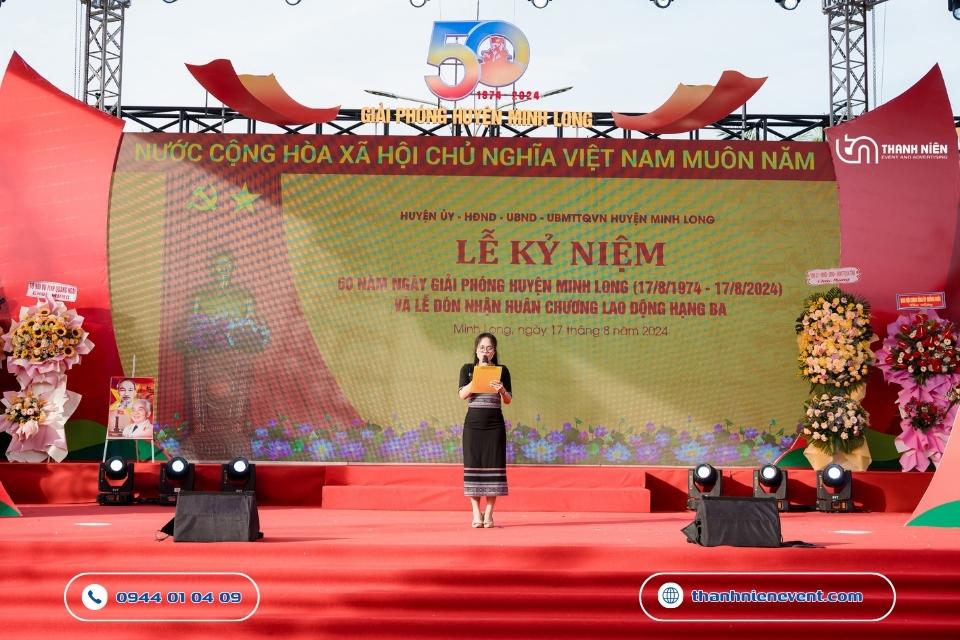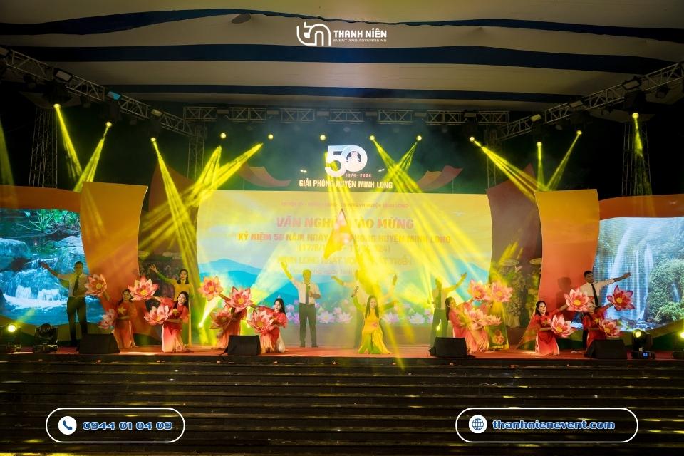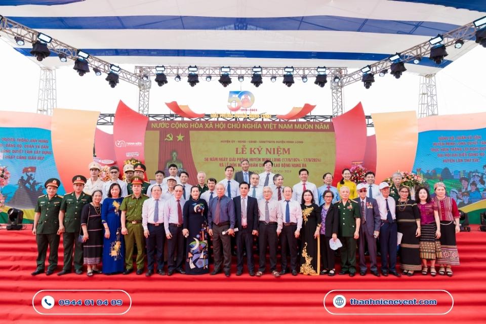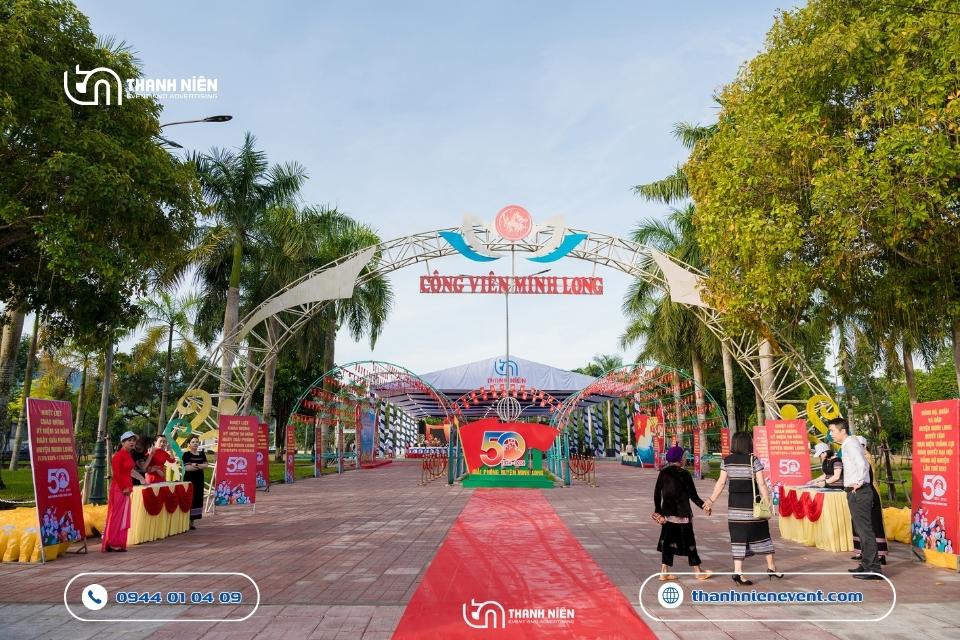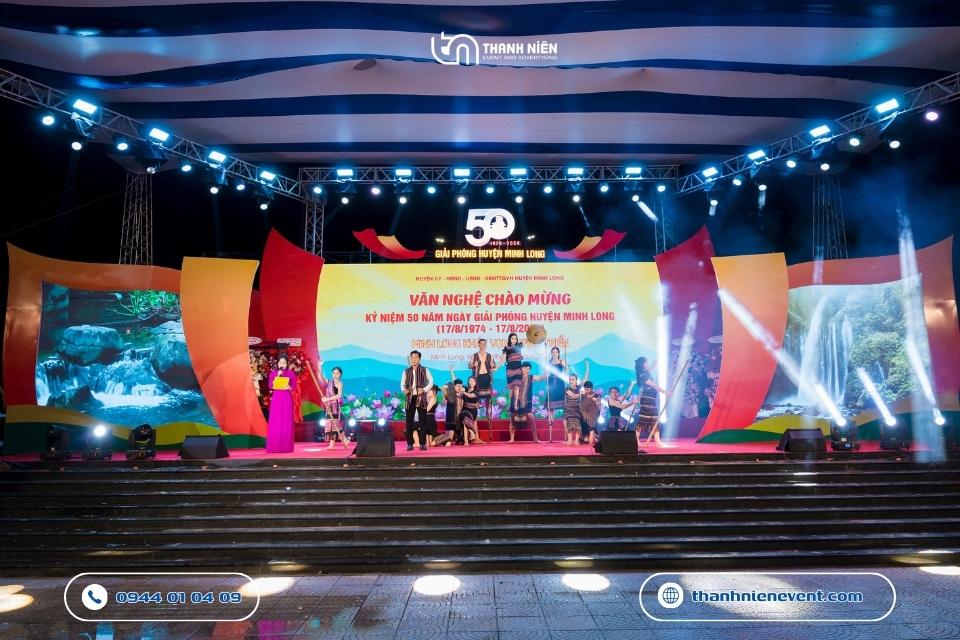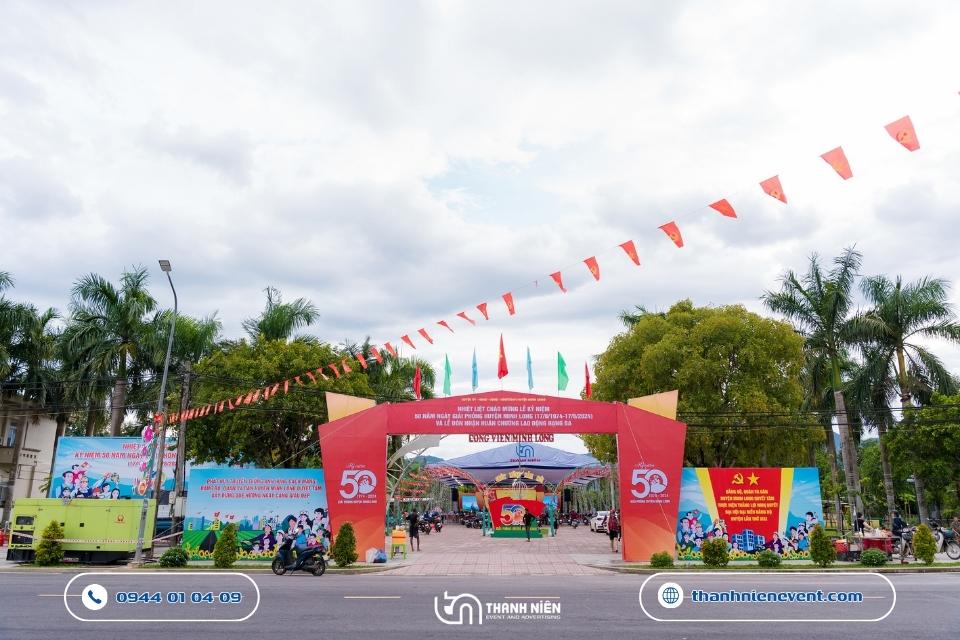 Chào mừng cột mốc vàng son 50 năm ngày giải phóng huyện Minh Long (17/8/1974 – 17/8/2024). Thanh Niên Event vô cùng vinh dự khi được lựa chọn là đơn vị tổ chức lễ kỷ niệm thành lập huyện. Với kinh nghiệm dày dặn trong việc tổ chức lễ kỷ niệm và các đại lễ chính trị, chúng tôi đã biến quảng trường trung tâm trở thành một không gian lễ hội vừa trang trọng, vừa đậm đà bản sắc văn hóa địa phương.
