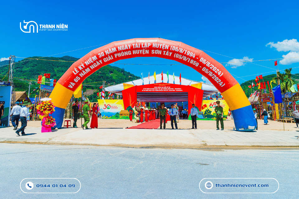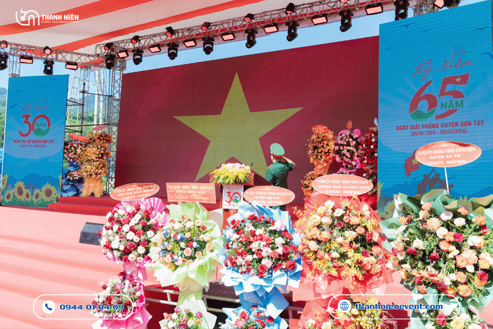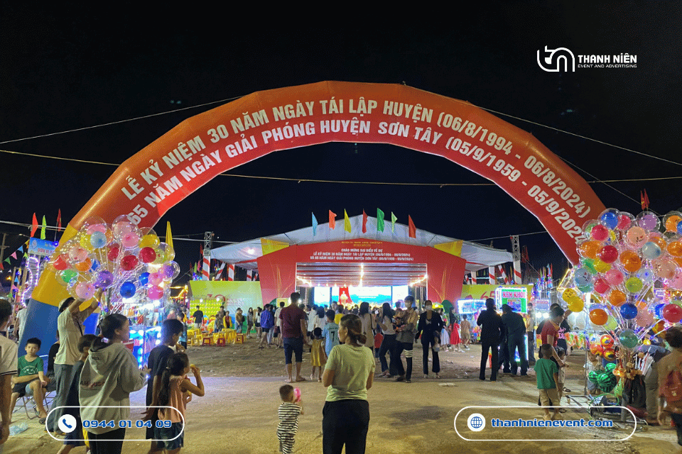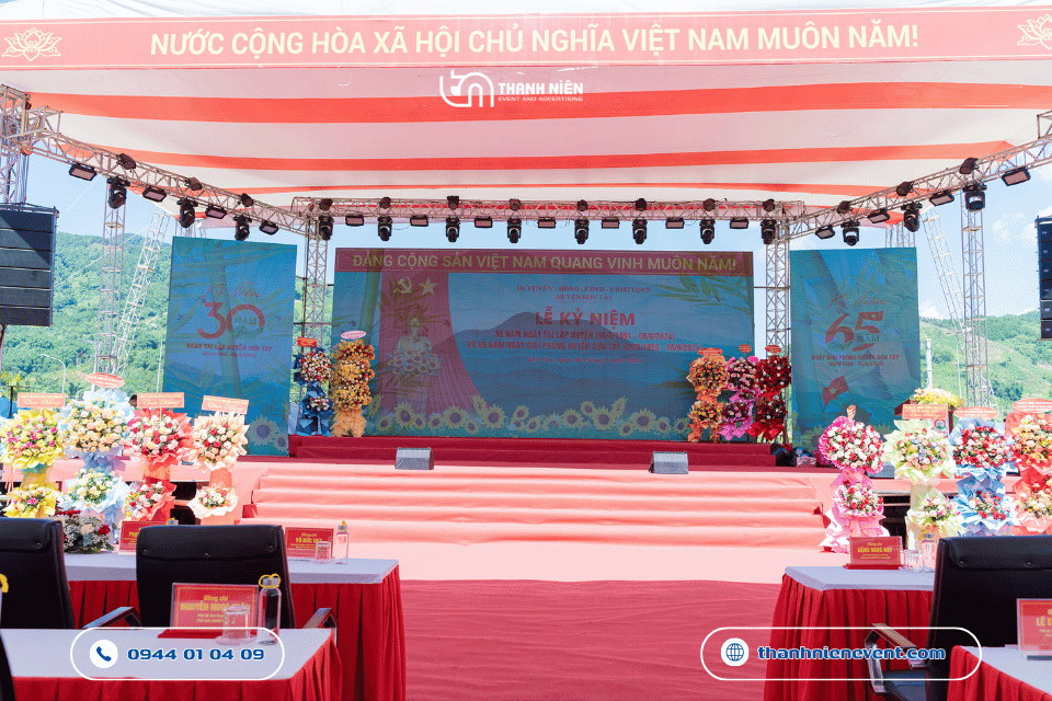 Thi công sự kiện tại huyện miền núi như Sơn Tây là một thử thách về vận chuyển. Tuy nhiên, với kinh nghiệm dày dặn trong việc tổ chức lễ kỷ niệm ngày thành lập cho nhiều đơn vị hành chính, đội ngũ kỹ thuật của Thanh Niên Event đã túc trực 24/7, vượt qua khó khăn về địa hình để hoàn thành khâu lắp đặt sớm hơn tiến độ, đảm bảo buổi tổng duyệt diễn ra suôn sẻ nhất.