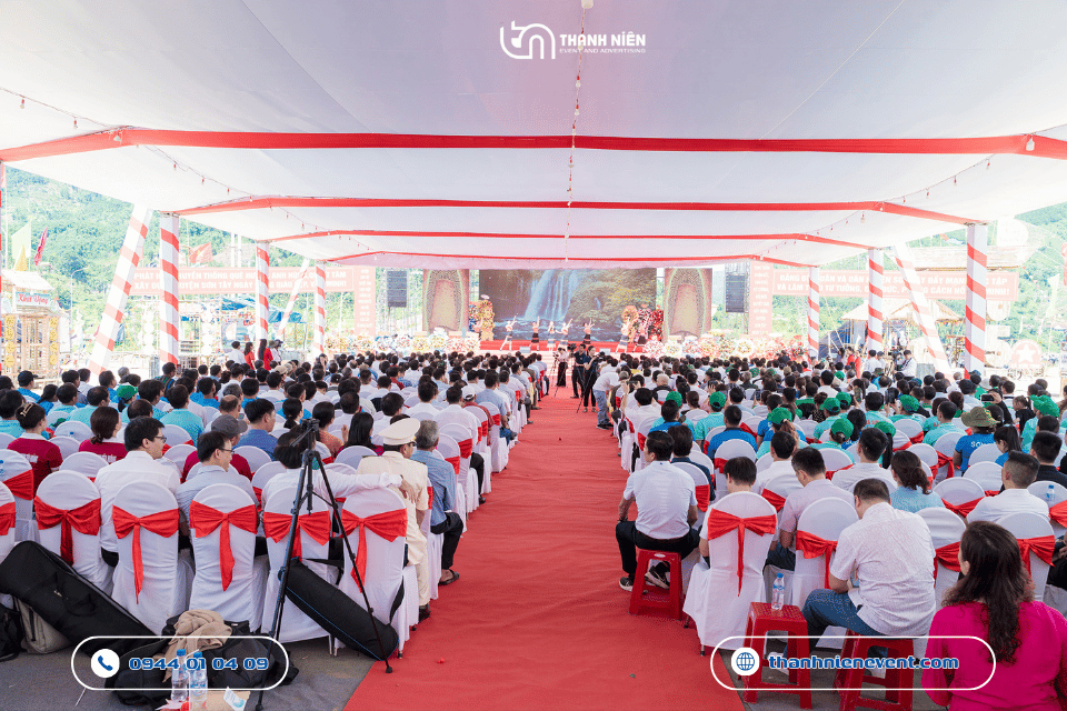 Vượt qua những thách thức về địa hình đồi núi và yêu cầu khắt khe về tính trang trọng, Thanh Niên Event tự hào là đơn vị đồng hành tổ chức sự kiện. Để sự kiện diễn ra mượt mà và đảm bảo tuân thủ hình thức sự kiện mang tính nghi lễ. Để làm được đều đó Thanh Niên Event luôn làm việc với: