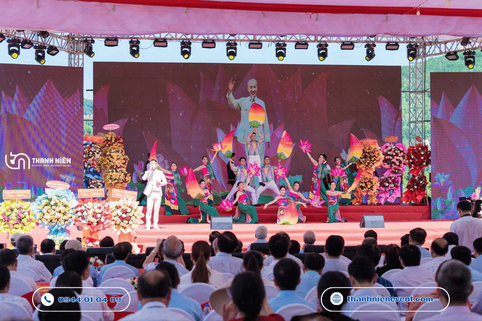 - Quy mô dàn dựng và thiết bị chuyên nghiệp: Việc tổ chức lễ kỷ niệm quy mô cấp huyện đòi hỏi hệ thống thiết bị phải đảm bảo cả số lượng lẫn chất lượng để phục vụ hàng ngàn đại biểu và nhân dân.