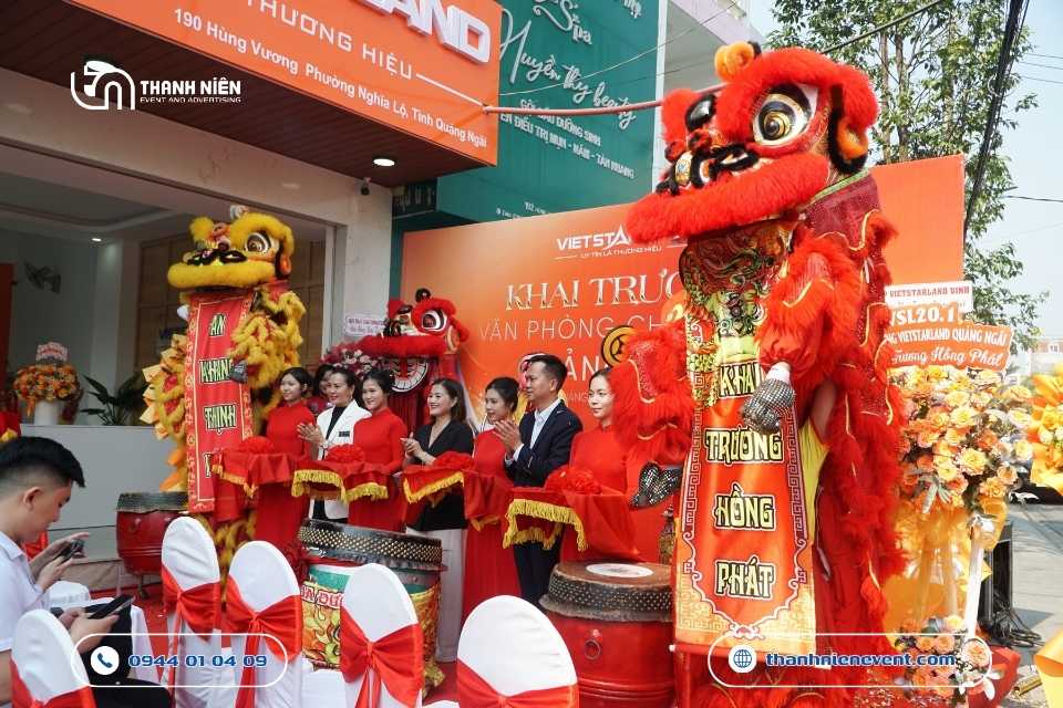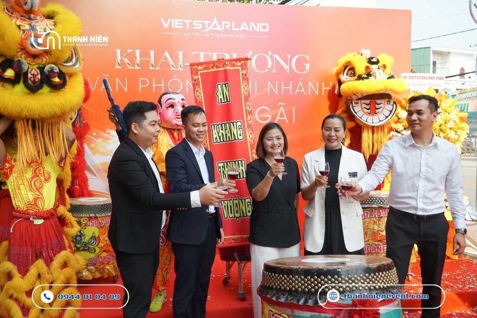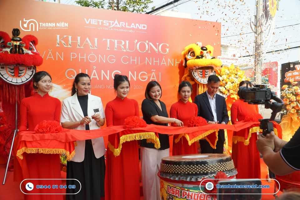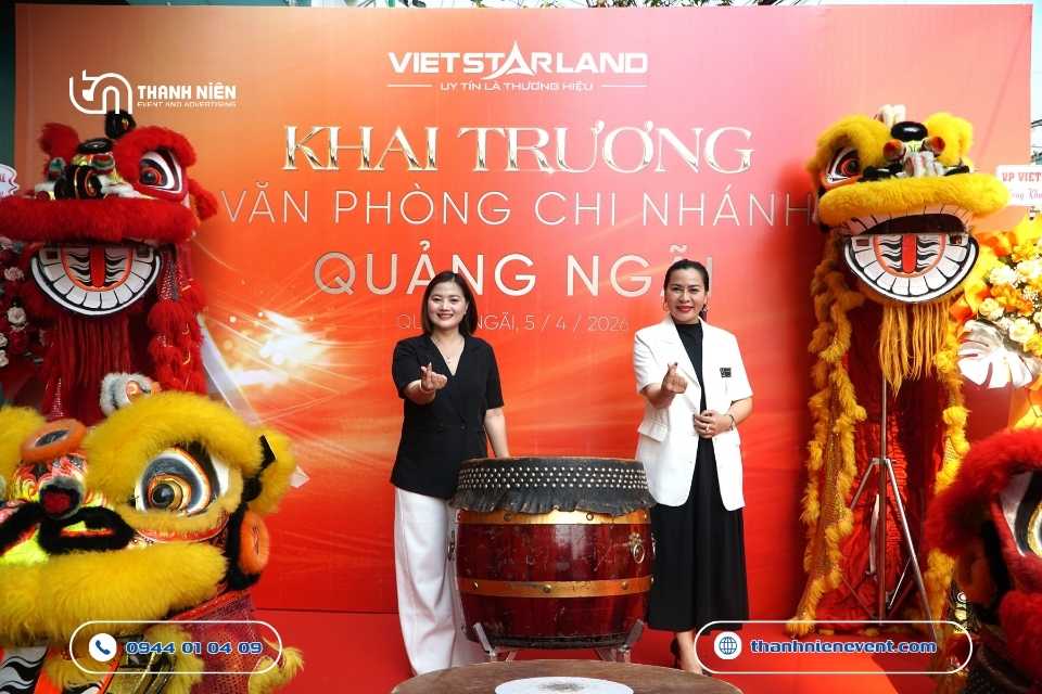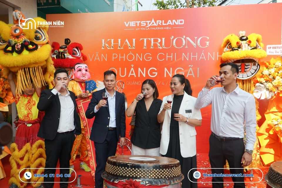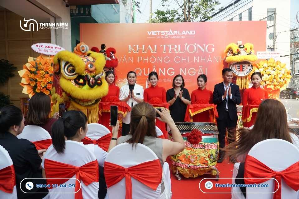 Thanh Niên Event tự hào là đơn vị đồng hành thực hiện dịch vụ tổ chức sự kiện khai trương trọn gói cho chi nhánh Vietstarland tại Quảng Ngãi. Với sự chỉn chu trong từng hạng mục từ khâu chuẩn bị đến thực thi, chúng tôi đã mang đến một không gian sự kiện sang trọng, đánh dấu bước tiến chiến lược của Vietstarland tại thị trường miền Trung.